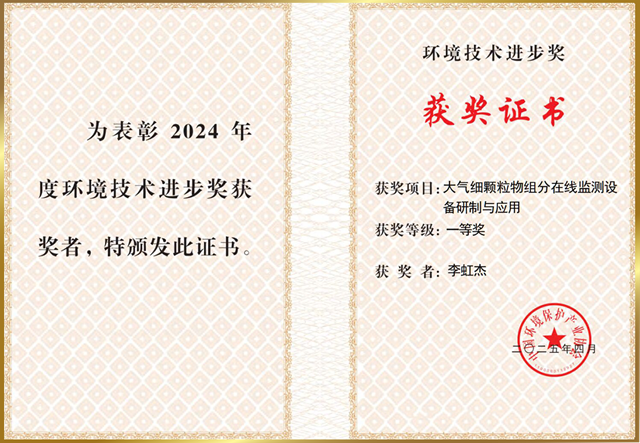 中國(guó)環(huán)境保護(hù)產(chǎn)業(yè)協(xié)會(huì)根據(jù)《環(huán)境技術(shù)進(jìn)步獎(jiǎng)獎(jiǎng)勵(lì)辦法(試行)》的規(guī)定,經(jīng)過(guò)提名、初評(píng)、終評(píng)、審定、公示等程序后,于2025年6月發(fā)布了2024年度環(huán)境技術(shù)進(jìn)步獎(jiǎng)獲獎(jiǎng)名單。其中12個(gè)項(xiàng)目獲得一等獎(jiǎng),27個(gè)項(xiàng)目獲得二等獎(jiǎng)。我公司與中國(guó)環(huán)境監(jiān)測(cè)總站、北京大學(xué)等單位共同申報(bào)的“大氣細(xì)顆粒物組分在線監(jiān)測(cè)設(shè)備研制與應(yīng)用”項(xiàng)目榮獲一等獎(jiǎng)。