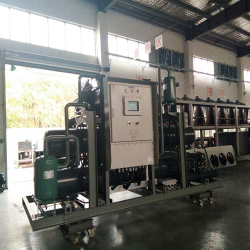 超低溫制冷機(jī)組控溫范圍在-40度至-120度,-40度至-90度時(shí)可采用二元復(fù)疊式制冷,-90度至-120度可采用三元復(fù)疊式制冷。